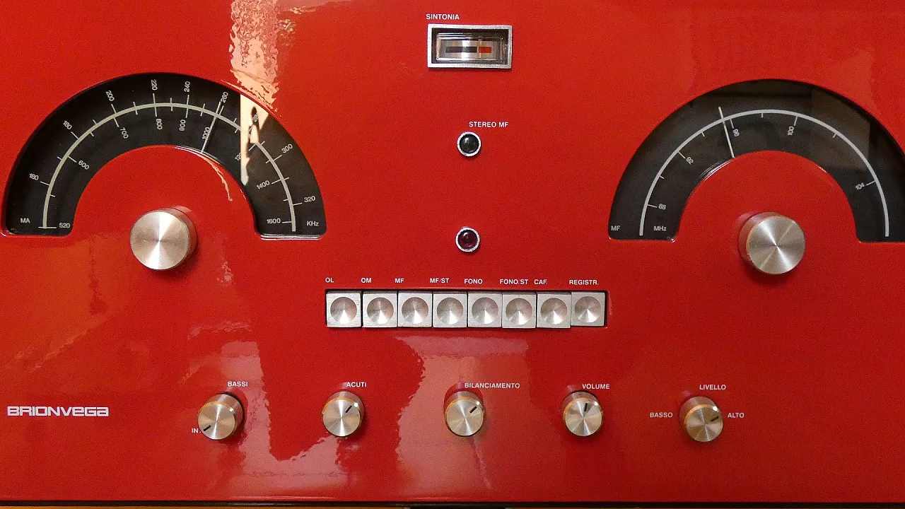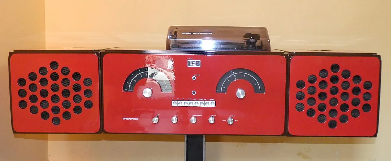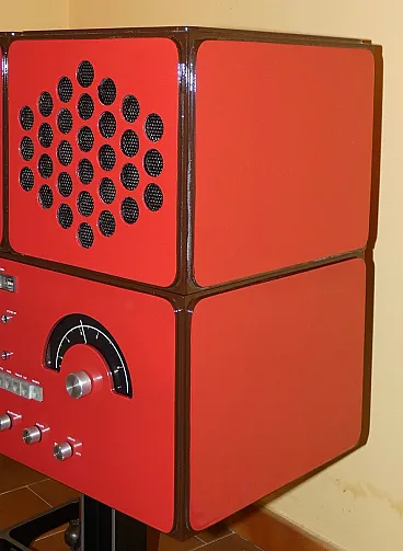 Third series of the famous Brionvega Cube RR 126 FO. Produced in 1971 and completely restored, it has the following characteristics: - perfect silkscreen prints and glossy lacquer - power supply recap and electronic overhaul - turntable overhaul with replacement of consumables - new magnetic head and preamplifier. It has been upgraded with the inclusion of the Bluetooth function so as to allow its use via modern electronic devices such as: cell phones, iPads or Tablets. Having become an icon of 60s pop art, this radiophonograph, present in the most important permanent exhibitions of MODERN ART in the world, was designed by the brothers ACHILLE and PIERGIACOMO CASTIGLIONI on commission from GIUSEPPE and ENNIO BRION (father and son owners of BRIONVEGA). In production from 1964 until about 1972. Of the RR126 there are 4 different versions with minimal internal differences: FIRST differed from subsequent productions for the stabilized transistor power supply, square buttons and knobs turned from solid aluminum; it mounted the English GARRARD AT60 turntable with a solid aluminum platter on which a acrylic glass cover was designed, which remained for all productions of the RR126. 2-way speakers with 20 cm IREL woofer speakers and oval alnico tweeters at the ends, light and sturdy multilayer wood cabinet, this very first production was made only with wood covering. A SECOND version, always with GARRARD AT60 turntable then AT60 MK2 (with arm lift), is produced lacquered WHITE, LOBSTER and WALNUT. 2-way speakers, switch on the first square button on the left, square and round buttons are now in aluminum-coated plastic, fuse and voltage changer. Then RR126 is updated with a smaller DUAL 1010 turntable with rounded edges and 4 black plastic nails appear to position the acrylic glass. The speakers are now a single 20 cm bi-cone speaker (first French AUDAX then Italian IREL). The THIRD version, now has the chipboard cabinet always covered WHITE WALNUT and LOBSTER, appears behind the headphone jack and the turntables are the new DUAL with square edges. In addition to the FM OM radio (medium waves) it also features long waves OL (in the first square button on the left so the switch is moved to the first knob at the bottom left). A hole also appears higher up on the left to be able to mount the PREAMPLIFIER for MAGNETIC turntable heads on request. A FOURTH and final version of the RR126 has been completely revised all the electronics. The main changes were: – Electronics with negative ground – All transistors are now silicon instead of germanium – Internal working voltage is now 60 Volts As a result, the equipment is more powerful and qualitatively better, becoming a true hi-fi equal to today's. It is equipped with a preamplifier for magnetic head as standard and the old electric Piezo Head is no longer provided. The turntable is the Dual 1225, 1226 and other more reliable ones. It is equipped above all with new two-way speakers of the highest quality with 17cm Heco Woofer and Heco Tweeter (both German made), separated by a beautiful cross over. Characteristic of this latest version... the cube closure is not provided, as the speakers use all the internal volume.