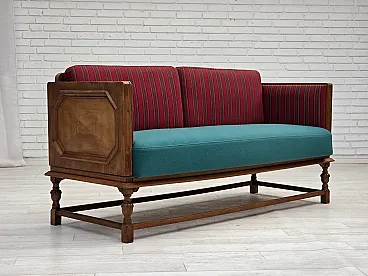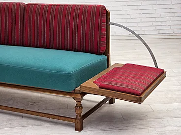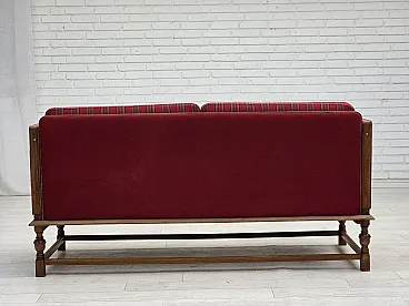 Danish 2-seater drop-leaf sofa in wool and oak wood, 1950s