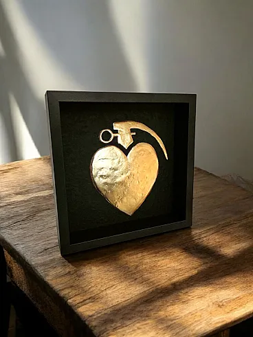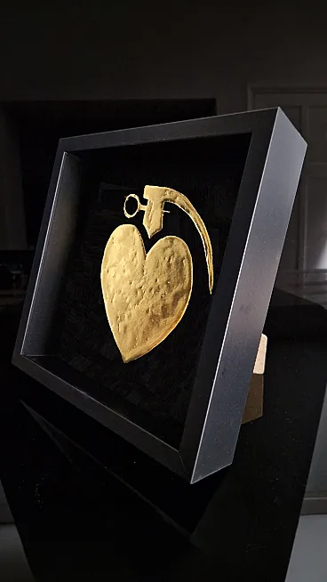 Lovegrenade 23kt gold gilded artwork in frame PopArt collection