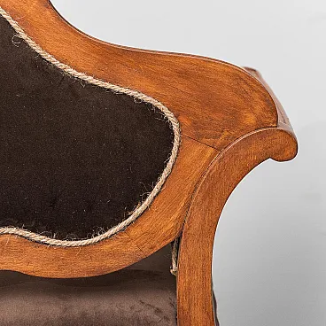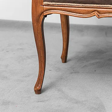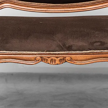 Entrance bench. Wooden structure with brown velvet coating. Excellent condition, as shown in the photo. 1950s design.