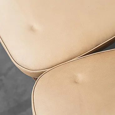 Set of 6 chairs. Wooden structure. Beige leather seat and back. Good condition, with signs of time as shown in the photo. 1950s design.