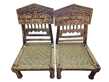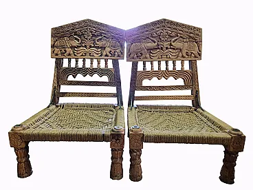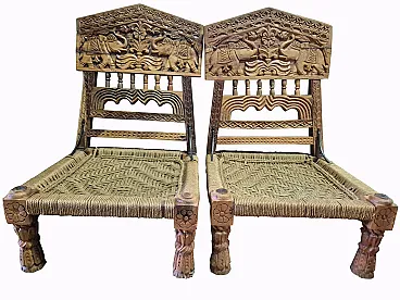 Pair of hand carved Indian chairs, 1920s