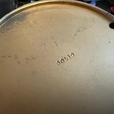 Striking 1970s Modern Gilded Metal Sculptural Italian Design Jug Vase Presenting a remarkable piece of 1970s Italian design, this sculptural jug vase is a testament to the era's innovative approach to form and material. Crafted from a gold-finished metal, its radiant presence and distinctive silhouette make it a captivating decorative object. The vase features a bold, conical body that tapers downwards, creating an elegant and architectural profile. What truly sets this piece apart is its integrated, cylindrical handle, which runs vertically along one side, separated from the main body by a clean, open space. This "negative space" design element adds a modern, almost deconstructed feel to the traditional jug form. The handle itself is subtly ribbed or reeded, providing a tactile contrast to the smooth surface of the main body and enhancing its sculptural appeal. The rich golden finish glows with a sophisticated warmth, making it a luxurious accent for any interior. Whether used to display a single dramatic stem, a dried arrangement, or simply admired as a standalone piece of art, this Italian design vase embodies the confident and artistic spirit of the 1970s. Excellent vintage condition. The gilted finish retains much of its luster, with minor signs of age and use consistent with its vintage nature, which only add to its character.