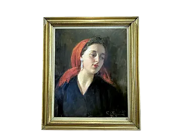 Portrait of a young woman by P.E. Passaro, oil on canvas, 1950s