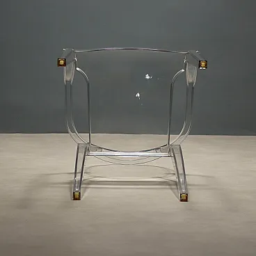 Transparent polycarbonate chair inspired by the lines of Louis XV armchairs.