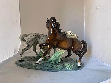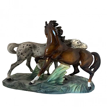 Ceramic sculpture of 2 horses by Ronzan, 1940s