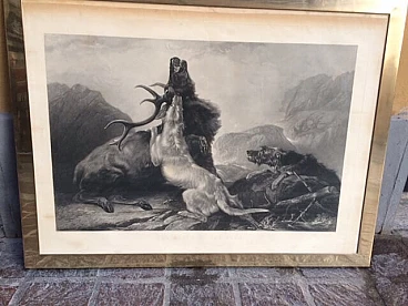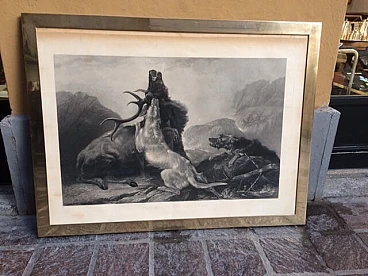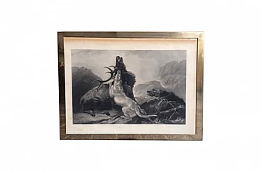 Stampa con scena di caccia al cervo '800