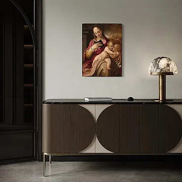 There is no shortage of Leonardo influences, particularly evident in the features of the face of the Virgin and in the yield of the landscape. In fact, this is made using the technique of aerial perspective, a method perfected by the Tuscan genius to create depth through the gradual loss of sharpness and chromatic intensity, thus simulating the effect of the atmosphere.