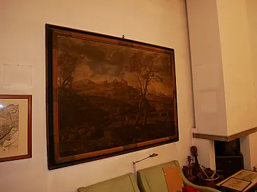 Oil landscape, ancient painting with contemporary frame