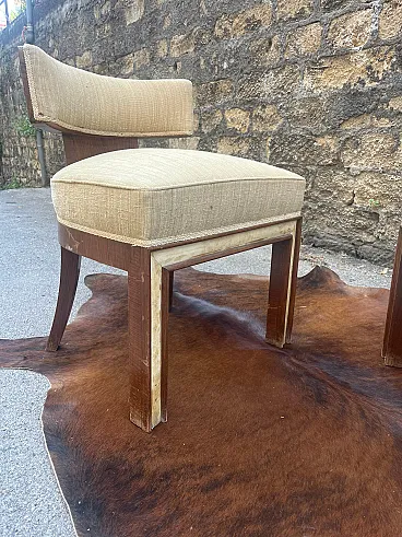 Refined, architectural, essential: these two armchairs designed by Studio BBPR represent a founding moment of modern Italian design. Made in the early years of the collective - active since 1932 - these seats embody the spirit of Italian rationalism that in the 1920s and 1930s began to redefine domestic space with a sober, functional and deeply cultured language. The painted or tubular metal structure - often chosen by the studio for its structural clarity - dialogues with the padded seats with contained but welcoming shapes. The design is clear, but never rigid. The proportion between full and empty spaces, between cold materials and warm fabrics, tells of an attention to detail that is typical of the cultured architecture of those years. These are not simply furnishings, but fragments of design thought: every curve, every angle is the result of a reflection on function, durability and beauty. In these armchairs you can perceive the desire to educate everyday life to the modern language, without ever giving up the human dimension. Ideal for a space with a sober yet refined taste - be it a living room, a study or a gallery - these two BBPR armchairs represent a functional work of art and a precious piece of the history of Italian design.