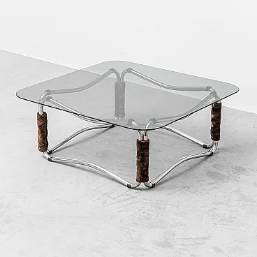 Coffee table in metal and smoked glass, 1970s