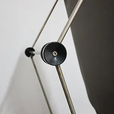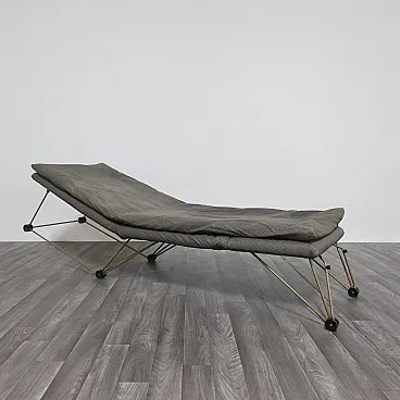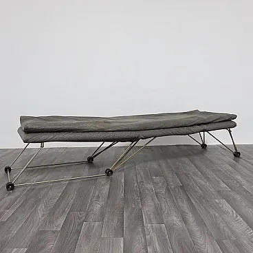 L’articolo ha una struttura interamente in metallo. Imbottitura in spugna e rivestimento in tessuto di colore grigio a pois originale dell’epoca.