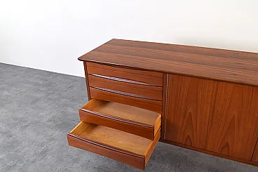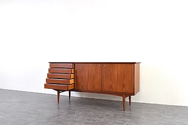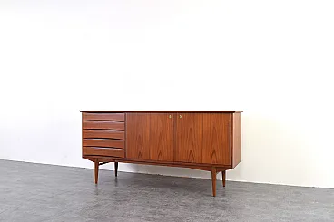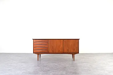 This teak sideboard was designed by Norwegian designer Fredrik Kayser in the 1960s and produced in Norway. The piece has been professionally and carefully restored by removing old coatings, staining and finishing with varnish. The restoration was carried out by a talented and experienced carpenter with over 20 years of experience. Thanks to these treatments, the sideboard looks stunning and will serve its new owner for many years without fear of damage or wear from everyday use.