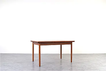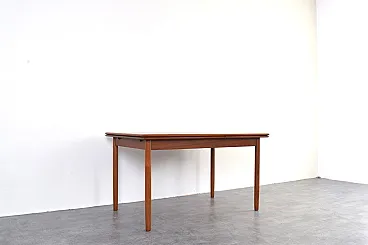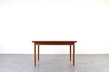 This teak table was manufactured in Denmark in the 1960s. It has been professionally and carefully restored by removing old coatings, staining and finishing with varnish. The restoration was carried out by a talented and experienced carpenter with over 20 years of experience. Thanks to these treatments, the desk looks stunning and will serve its new owner for many years without fear of damage or wear from everyday use.