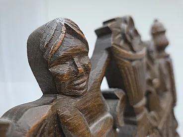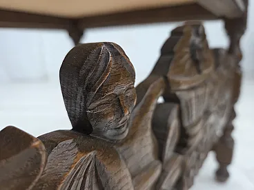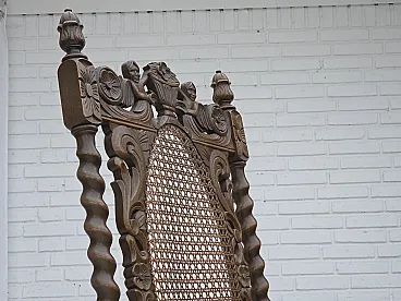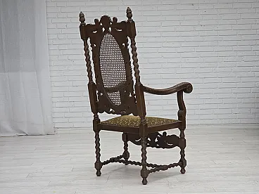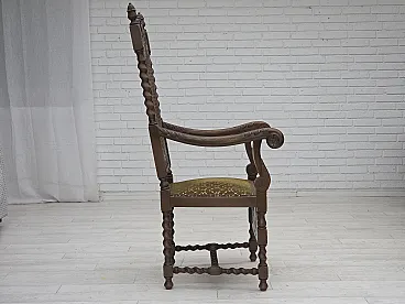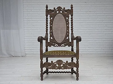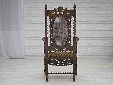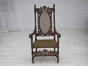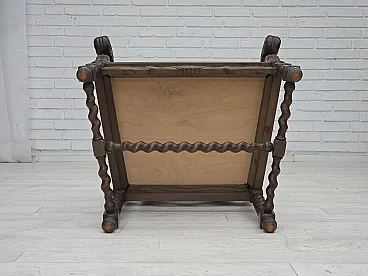 Danish highback armchair velour, carved oak, anni '30