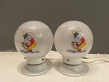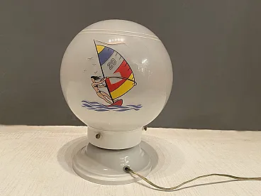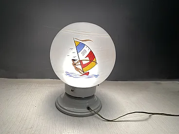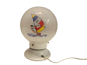 Midcentury Fun in the Sun table lamps Opaline glass with a colorful windsurfing design on the glass Height 25cm Width 18cm Features 1 light Requires E14 bulb EU plug. ┃