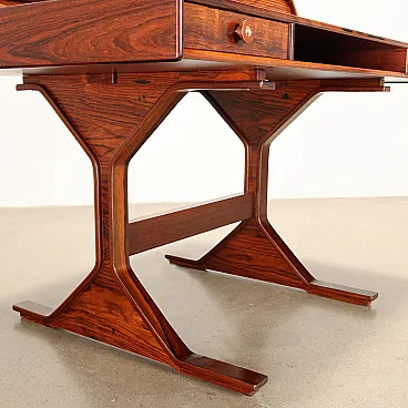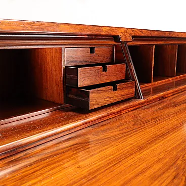 A 1960s jacaranda veneered writing desk from the \"530\" series, designed by Gianfranco Frattini for Bernini, features a shelf with roller shutters. This piece was restored in our workshop. Very good condition.