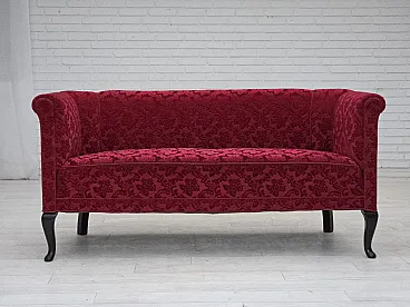 Danish 2-seater sofa in cherry red velvet, 1950s