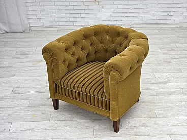 Danish relaxation armchair in green wool and ash wood, 1950s