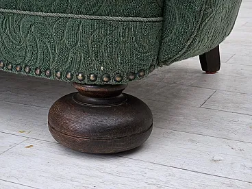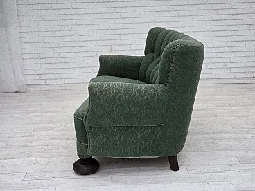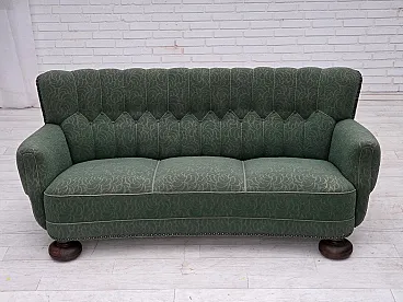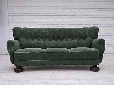 Danish 3-seater sofa in green furniture wool and oak wood, 1960s