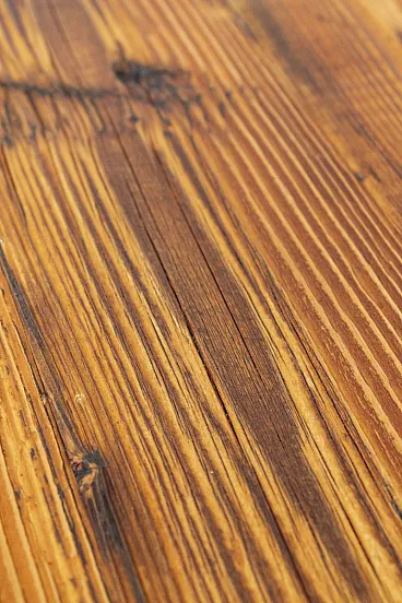 The lack of moisture in the aged wood and the sandwich structure with the 7mm boards prevent the top from cracking or even deforming, making the table very sturdy