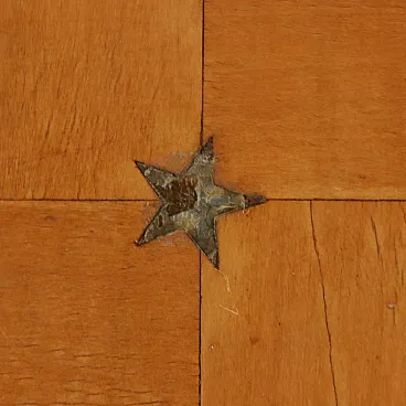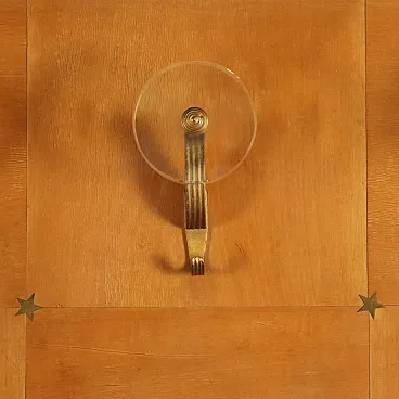 Coat stand with poplar veneered wood base featuring star-shaped decorations - some of which are missing - brass and glass details. Decent condition.