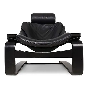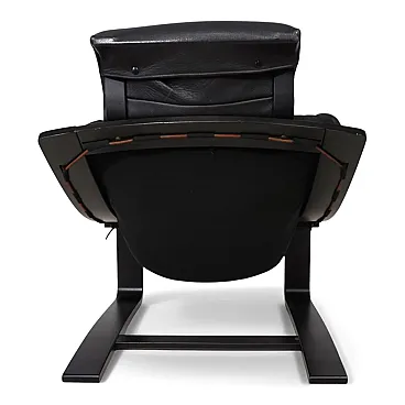 The Kroken armchair in the popular black/black color combination is in good condition for its age. The black leather and black wooden frame show minimal signs of wear. The leather of this lounge chair is of high quality, which is evident in its premium look and feel.