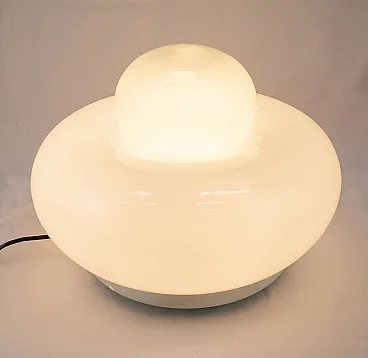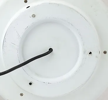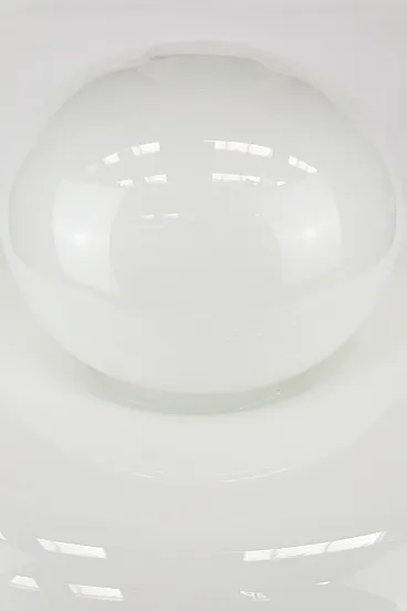 The proposed lamp is in excellent condition: it works perfectly with 4 supplied E27 bulbs, has no pecking on the glass or obvious marks on the metal base. Although it is a ceiling light, it can be adapted as a table lamp if desired. It is unbranded, a common element in the first Artemide production