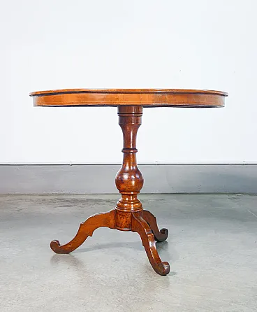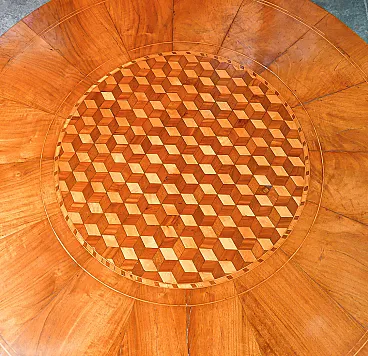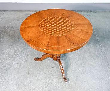 Round coffee table by Rolo in veneered and inlaid wood, 19th century
