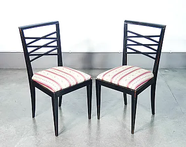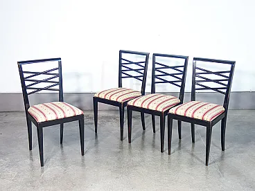 4 Black lacquered wooden chairs, 1940s