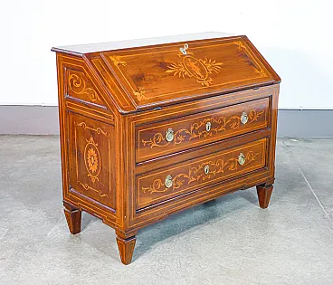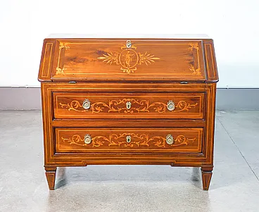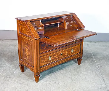 Ribalta secretaire Louis XVI in solid inlaid walnut, 19th century