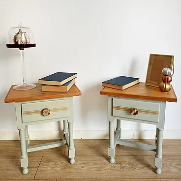 Pair of Royal bedside tables in solid patinated wood, 20th century