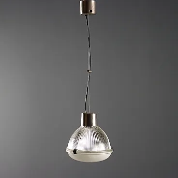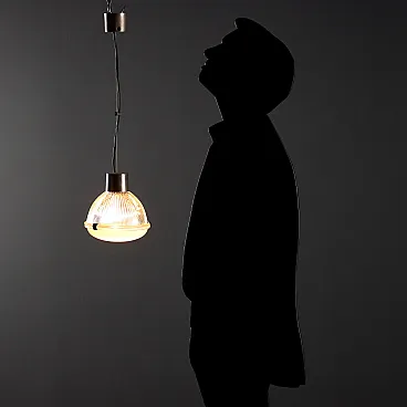 Pair of lamps model 4409 with structure in brass and lacquered metal, diffusers in printed glass.