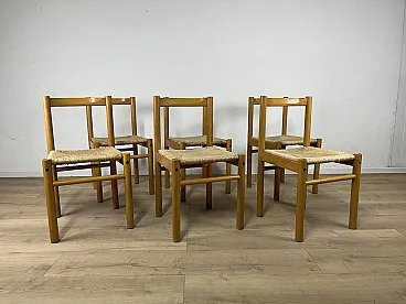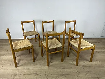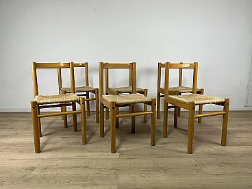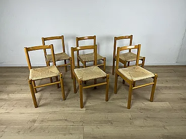 6 Ash wood chairs and straw seat by Ibisco, 1970s