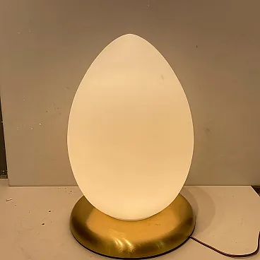 Pair of Egg-shaped table lamps in opaline glass, 80s