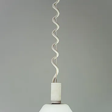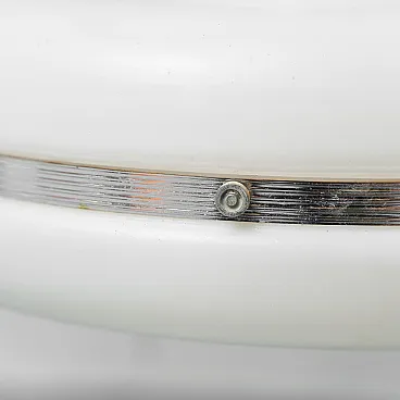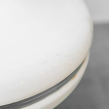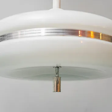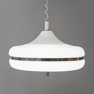 Space Age chandelier. Lampshade in white plastic with metal details. Conditions as per photo. 70s design.