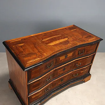 Three-drawer chest of drawers in wood and bronze, 18th century