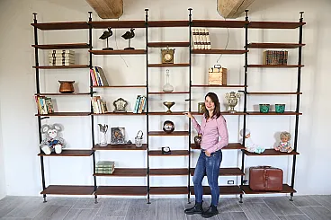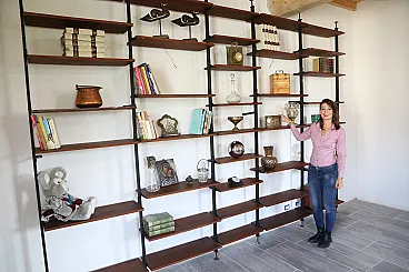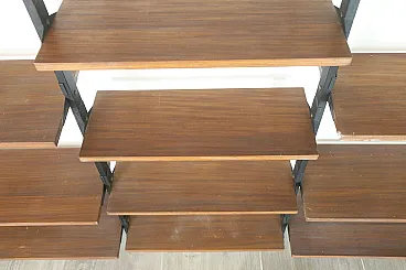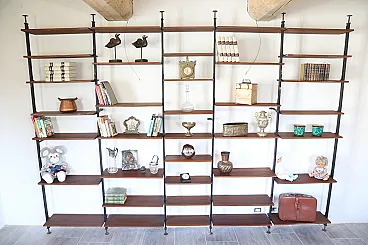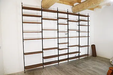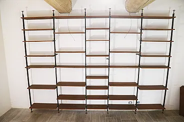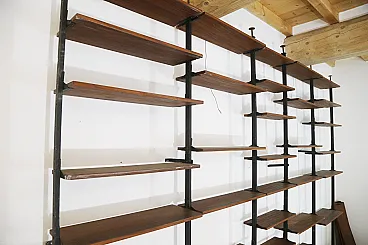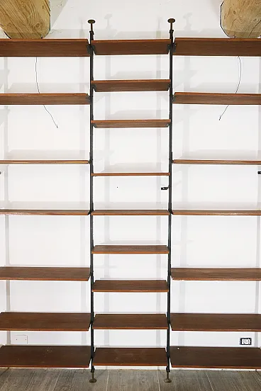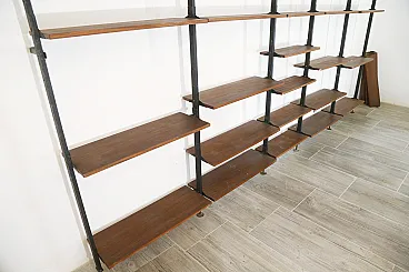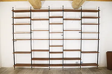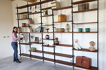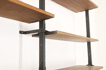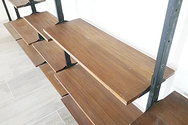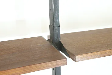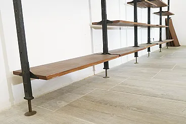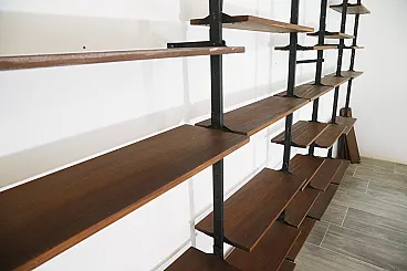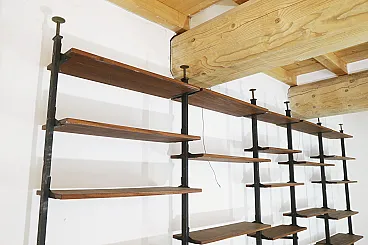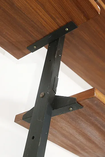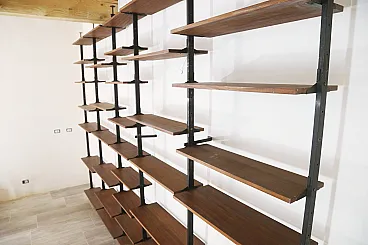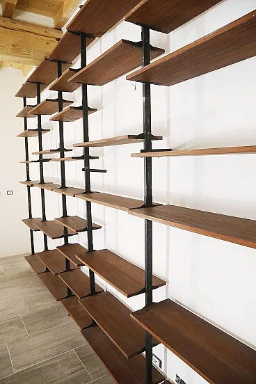 The uprights are made of black painted iron, the shelves are made of plywood veneered in mahogany pima.