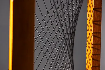 The seats are upholstered in black alcantara, offering a refined matte texture that complements the warm tone of the wood. With their clean lines, lightweight visual expression, and exceptional craftsmanship, these chairs make a striking addition to dining spaces, studios, meeting rooms, or design-oriented interiors.