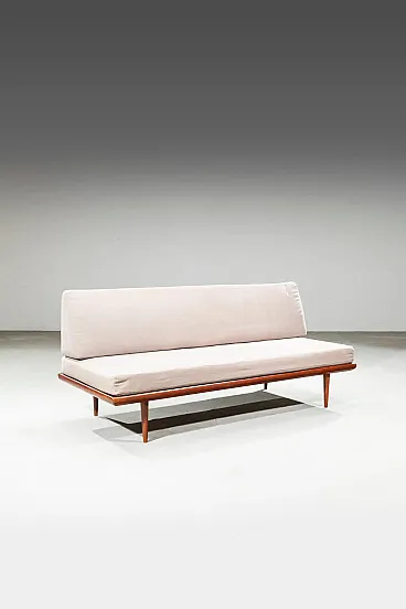 Day bed Wooden structure, fabric-covered padding, steel details. Manufacturer's brand Prod. France & Son, Denmark, 1960s France & Daverkosen - are today among the most sought-after names in the vintage market. Many pieces still in circulation retain their original label and were designed by the most important Danish designers of the Mid-Century. Many sources agree that the popular company was founded in Denmark around 1948 by British entrepreneur Charles W. France and Danish cabinetmaker Eric Daverkosen. Initially specializing perhaps in mattresses, France & Daverkosen owned a large furniture factory in Hillerød, just outside Copenhagen, in 1952, quickly becoming one of the most famous furniture companies in Denmark, dedicated to mass production rather than traditional artisanal methods. Seats with wide cushions and lightweight teak frames are the hallmarks of France & Daverkosen. In 1957, when France's son Julian joined the company, the name changed to France & Son.