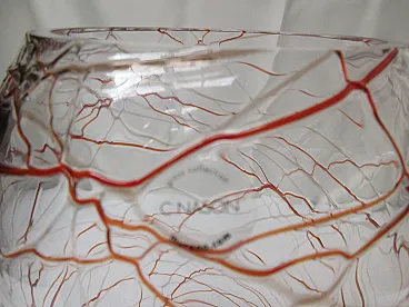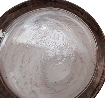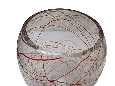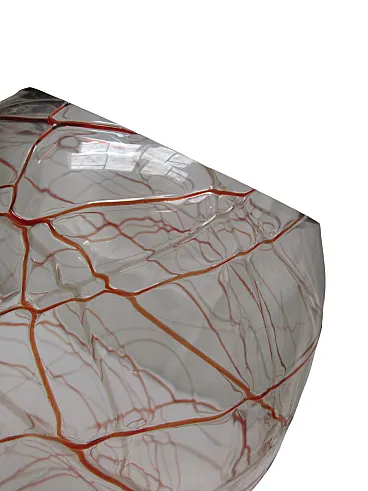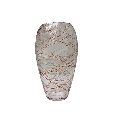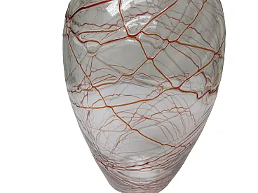 Elegant blown glass vase, characterized by the inclusion of lattimo filaments in shades of red and grey, of different thicknesses, which intertwine in a refined vertical design. The surface and transparency of the body enhance the chromatic play and the lightness of the decorations, in perfect balance between the tradition of Murano glass and contemporary taste. Signature: signed on the bottom Original label: C. Nason, Murano Carlo Nason was born in Murano in 1935 into a family of master glassmakers. From a young age he learned the art of glass in the family furnace. In the 1950s he began creating glass vases and objects, which are now also exhibited in museums such as the Corning Museum of Glass. Between 1965 and 1980 he worked mainly with the A.V. glassworks. Mazzega, designing lamps and objects that have become very famous. He later collaborated with other Murano companies, such as Vistosi, Moretti, Seguso and Leucos. His style is simple and modern: he loves clean shapes and opaline glass which diffuses light in an elegant way. His works can be found in important museums such as the MoMA in New York. MURANO GLASS Murano glass is a type of artistic glass produced on the island of Murano, located in the lagoon of Venice, Italy. This glass is renowned for its beauty, craftsmanship and centuries-old tradition. Distinctive characteristics of Murano glass include: 1. Vibrant, rich colors: Murano glass is famous for its wide range of vibrant colors. Artisans use a variety of pigments to create rich, intense shades. 2. Handmade: The production of Murano glass is an art that requires skill and precision. Artisans follow traditional techniques passed down from generation to generation, often shaping glass by hand with specialized tools. 3. Murrine: Murrine are small sections of colored glass arranged in a specific pattern within a larger pane. This technique is typical of Murano glass and can be used to create complex geometric designs or images. 4. Lampwork: Some Murano glass objects are created using the "lumework" technique, which involves manipulating glass tubes heated over a flame to shape them into desired shapes. 5. Transparency and brightness: Murano glass is known for its crystalline transparency and ability to reflect light beautifully. This attribute contributes to its beauty and makes it ideal for creating jewelry, chandeliers and objets d'art.