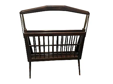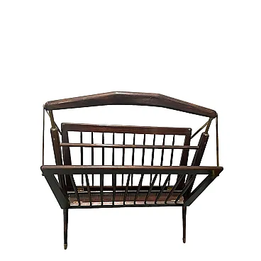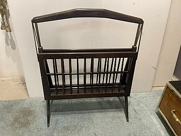 Folding magazine rack in stained wood and brass by Cesare Lacca, Italy, 1950s