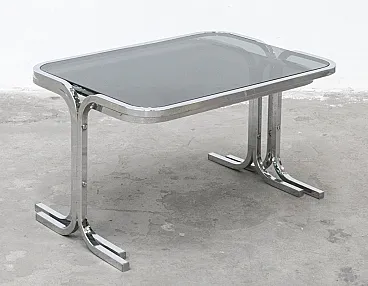 Pair of steel and smoked glass coffee tables, 20th century 3