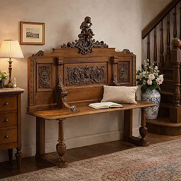 Richly carved walnut bench, late 19th century