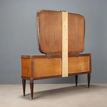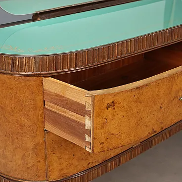 Dresser with mirror, in burl, beech, brass and glass, 20th century