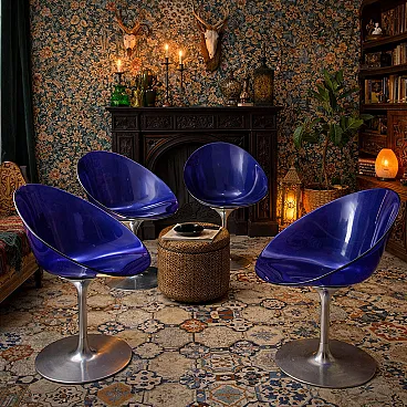 4 Swivel chairs in die-cast aluminium and polycarbonate, 20th century