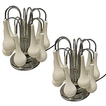 Pair of white Murano Glass Waterfall Table Lamps, 1970s