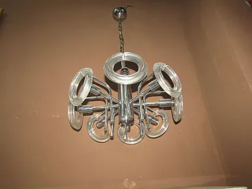 Steel chandelier and crystal discs, 70s