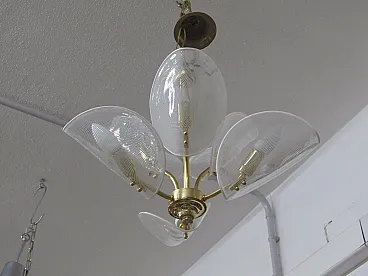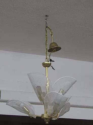 particular Franco luce chandelier with Murano glass and brass leaves