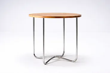 The piece is fully original and comes from the same interior as Halabala functionalist chairs. It remains in very good original condition, with well-preserved veneer showing a deep natural grain and chrome surfaces retaining a fine, age-appropriate patina.